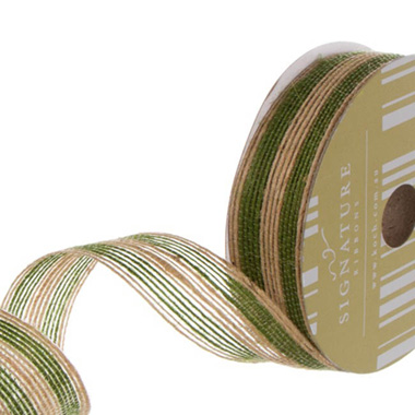 Natural Jute Fiber Ribbon Double Stripes Moss (25mmx10m)