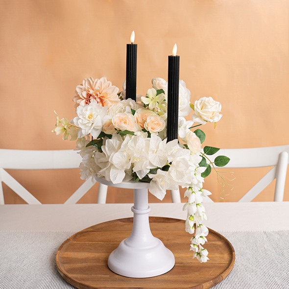 Because they don’t have a naked flame, LED Candles can be safely used in any setting. A popular choice is to display LED candles under flower arrangements as table centrepieces or ceremony decorations. To make this design you will need an open flower stand with room at the bottom for your candles to be placed. Create a small to medium bouquet and place it on the top of the stand. Then position a collection of LED Pillar Candles in different heights at the base. To complete the look you can add some extra decorative artificial flowers or greenery around the candles to match the top bouquet.