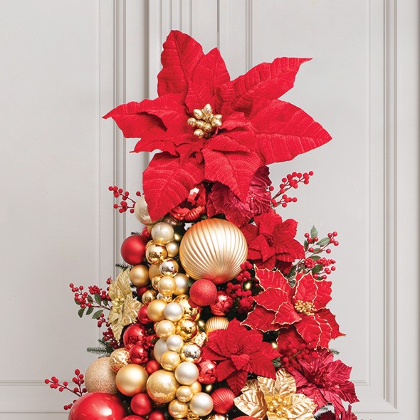 Oversized ornaments naturally draw the eye. With just a few key pieces, you can make a strong visual impact without overloading your space with smaller items. Perfect for large commercial settings and big installations, this approach helps reduce setup time while delivering maximum “wow” factor.