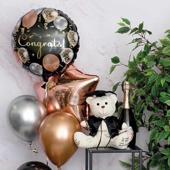 For the ultimate celebration, catering to the party enthusiast in your graduate, graduation balloons and graduation-themed teddy bears create a festive and heart-warming combination. Helium balloons bring a burst of colour and joy to any graduation gathering. They float gracefully, carrying with them a sense of excitement and accomplishment. With an extensive selection of colours and designs, you can tailor them to match the graduate’s unique style and the overall theme of the celebration.