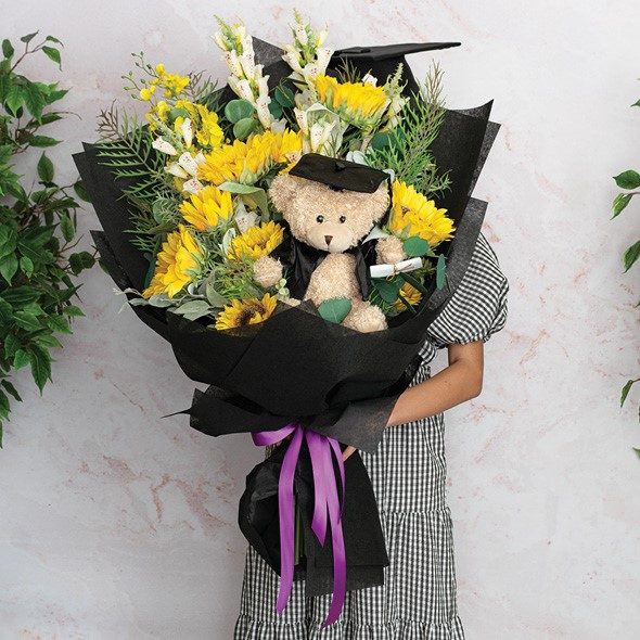 So, whether you opt for graduation helium balloons, a cute and cuddly graduation teddy bear, or an extravagant balloon bouquet, these thoughtful gifts will ensure your graduate celebrates their accomplishments in style. And for those who can’t resist the allure of plush companions, a plush graduation bear is a heart-warming keepsake that will bring comfort and joy throughout their post-graduation journey.