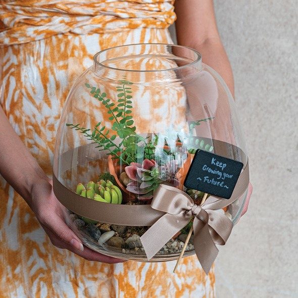 The recipient can proudly display their terrarium vase in their new apartment or first official office space. Each day, they’ll be reminded of your thoughtful gift and the beauty of nature encapsulated within the elegant glass walls.
