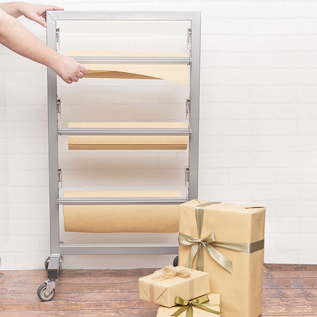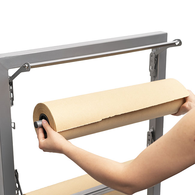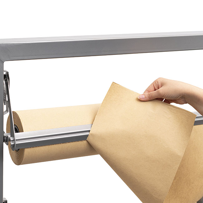 Has a sturdy metal frame with a superior cutting blade for easy cutting of kraft paper and counter rolls. The dispenser is ideal for wrapping parcels, boxes and gifts. Components are not water-resistant.