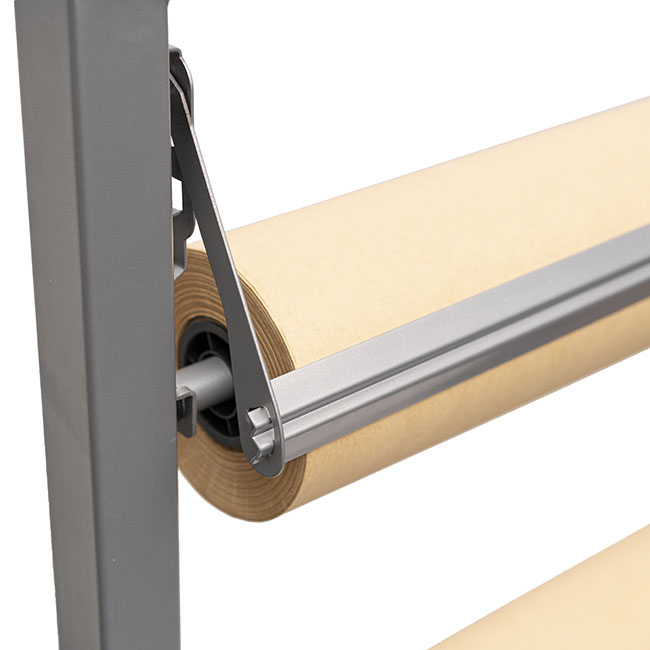Has a sturdy metal frame with a superior cutting blade for easy cutting of kraft paper and counter rolls. The dispenser is ideal for wrapping parcels, boxes and gifts. Components are not water-resistant.