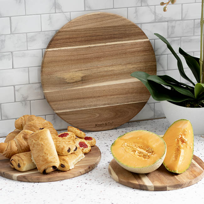 this round board measures 35cm in diameter and 1.5cm thick. This product is sold individually.