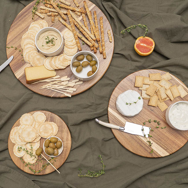 This round board measures 45cm in diameter and 1.5cm thick. This product is sold individually.