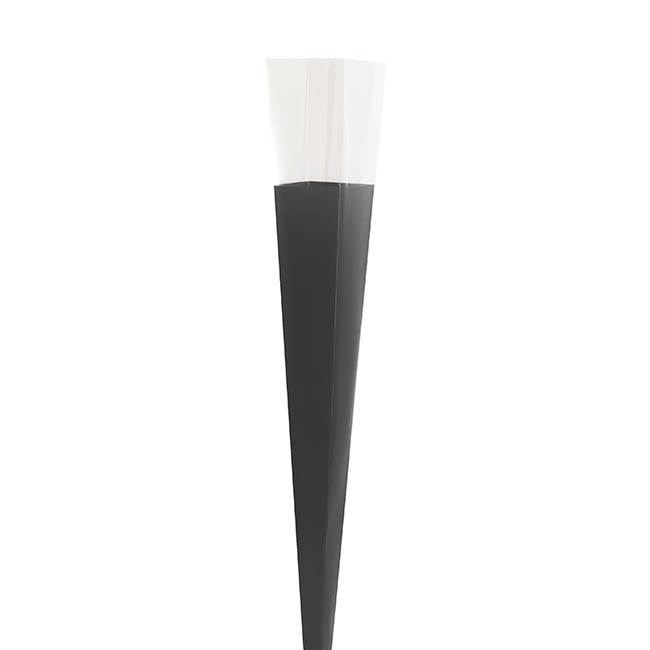 The solid colour runs 3/4 of the way up the cone (50cm), with the topmost section (15cm) being clear PVC, to facilitate showcasing of your chosen bloom. The base is open to drain water and can be used with a water vial.
