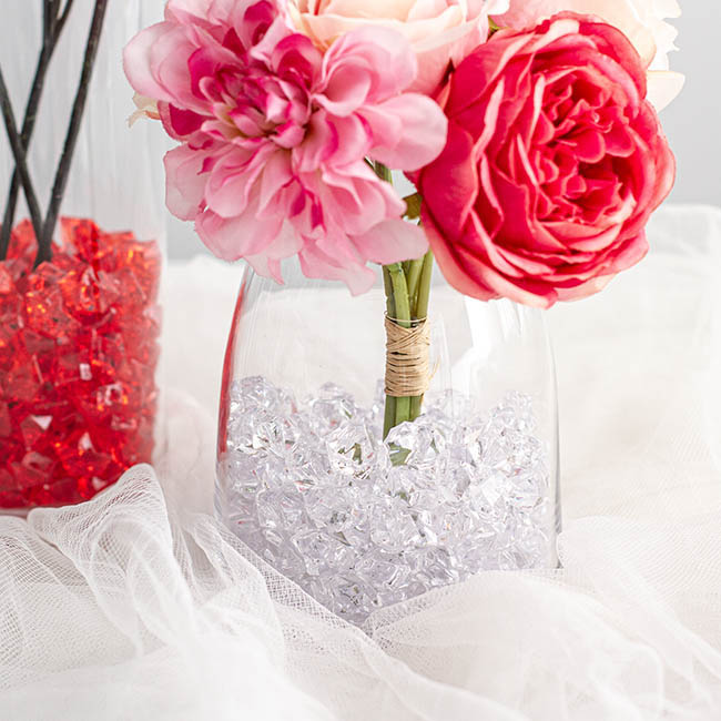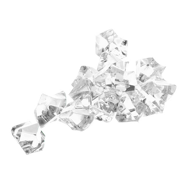 Acrylic rock crystals are used for either scatters on tables or in a vase with or without water. Its acrylic make up gives them a glass look finish and are waterproof allowing you to add that sparkle in your fresh arrangement. Each rock is approx. 15x25mm and each jar contains 150-160 pieces.