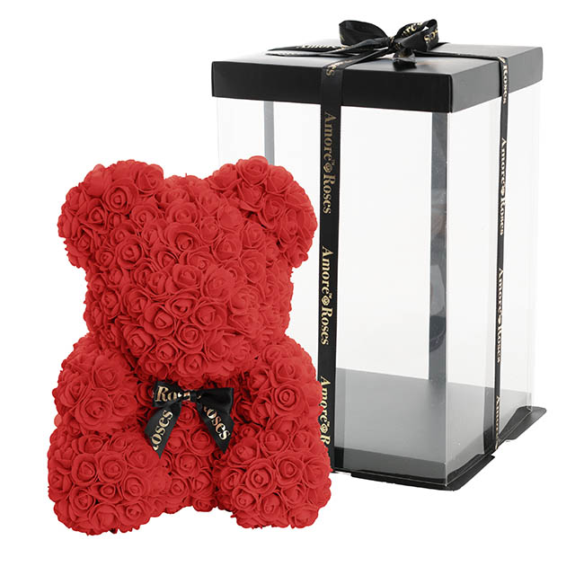 Our Amore™ Rose Bear in Red is an everlasting gift perfect for any occasion, whether as a romantic gesture or a heartfelt token of appreciation. Crafted from PE foam roses, this bear has a styrofoam base, which makes for a lightweight decorative piece.