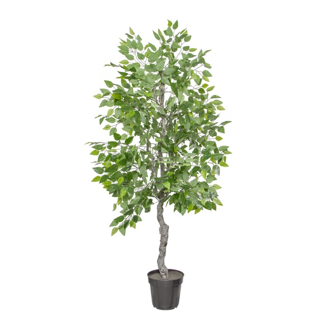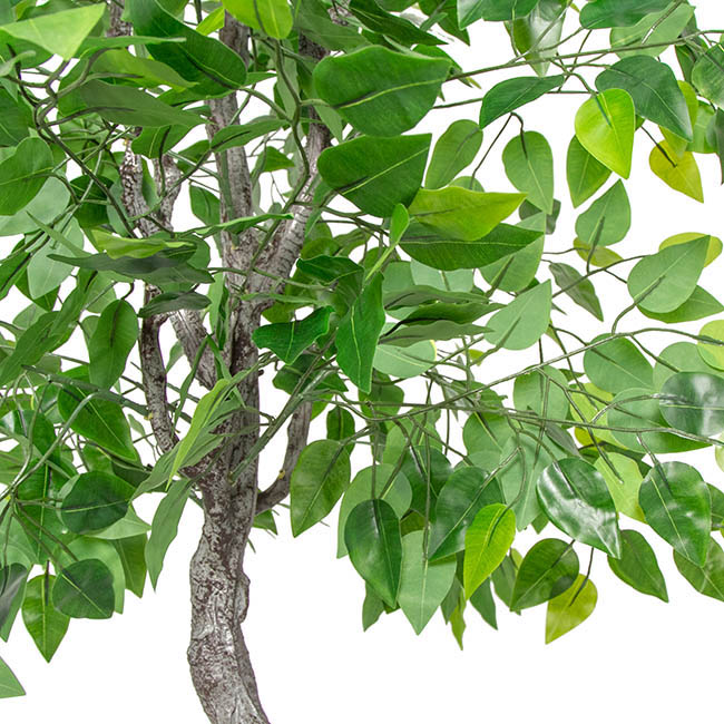 With it's lush glossy leaves and light grey bark, the artificial Ficus Tree can be used for event and home decoration. Place it in your favourite coloured pot as a simple way to brighten up dull spaces. Stands 180cm tall, including it's black plastic pot. Pot measures at 17.5cmD x 14cmH.