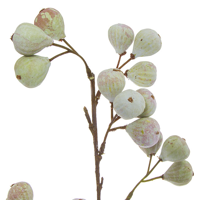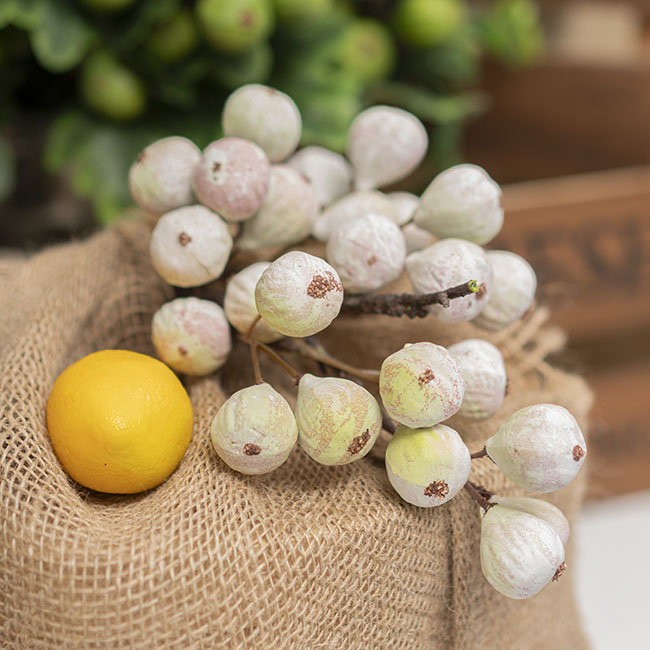 This spray measures 61cm in overall height and includes 22 medium whitish green figs. Each fig measures approximately 2.5cm at its widest point and 2.5cm tall.
