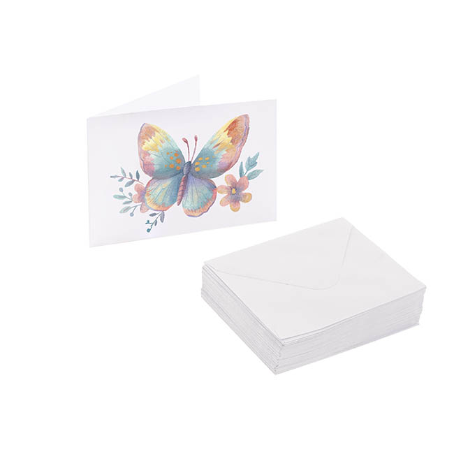 There are 25 folded cards per pack, along with 25 white envelopes. Sold as a complete pack of 25 cards and envelopes, the cards measure 10cm wide and 6.5cm tall when folded.
