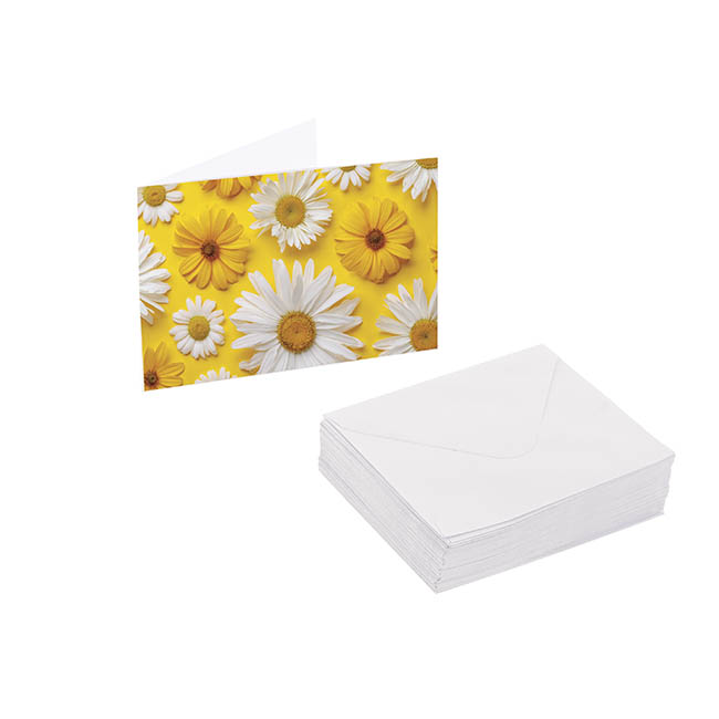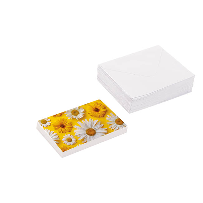 There are 25 folded cards per pack, along with 25 white envelopes. Sold as a complete pack of 25 cards and envelopes, the cards measure 10cm wide and 6.5cm tall when folded.