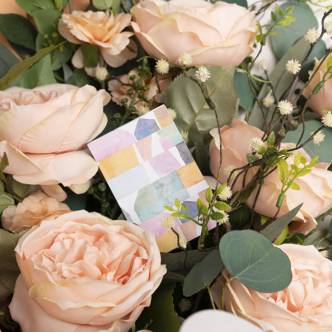 This Artisan card has a landscape-style layout with side fold on the short edge, so the card will stand lengthways for display. This design provides a premium modern look and added privacy for your notes.