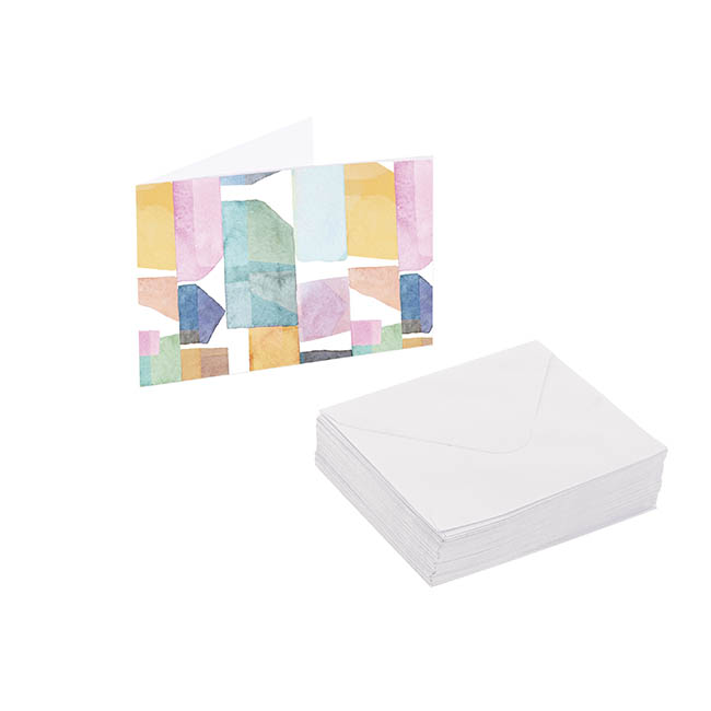 There are 25 folded cards per pack, along with 25 white envelopes. Sold as a complete pack of 25 cards and envelopes, the cards measure 10cm wide and 6.5cm tall when folded.