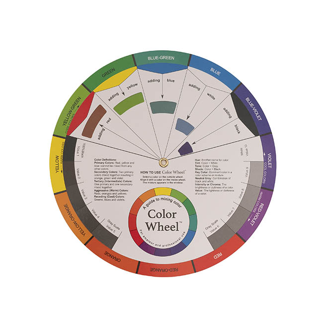 To use a colour theory wheel, rotate the inner disc to align a chosen base colour with various options-- this reveals complementary, analogous, and triadic colour combinations, making it easy to create visually balanced palettes. -- Features of this wheel not only include a colour palette wheel and colour matching tool, but also a colour mixing chart.