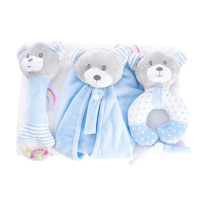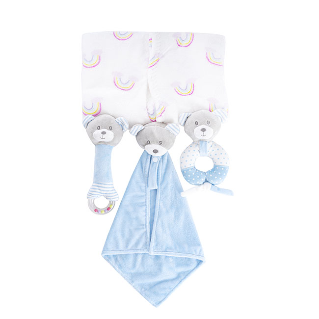 - Ultra-soft polyester fleece blanket with a rainbow design. Measuring 100cm x 70cm