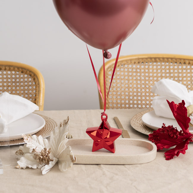 Weighs about 140 grams and can hold up to five 18"" helium balloons and up to 20 - 25 12"" latex balloons. It has a tiny loop on the top where you can tie the ribbons of your balloons. Such a pretty decorative piece for your table settings or any space.