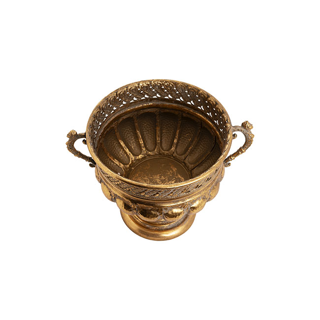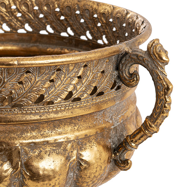 This urn measures 28.5cm in top diameter and stands 27cm tall. The total width including the handles measures 37.5cm. The bottom base is 18cm in diameter. The inner diameter is 25.5cm and the depth is 18cm. This product is sold individually.