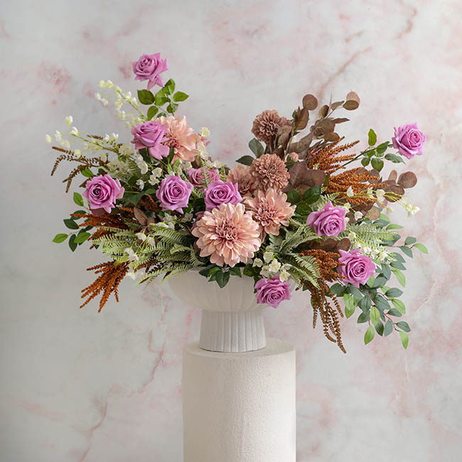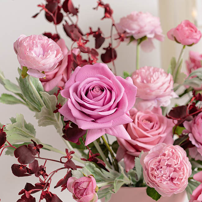 Our Real Touch Bella Full Bloom Rose in Dusty Pink is our most premium artificial rose. This rose features a larger flower head with more petals, which feature lifelike veins on the inner side of each petal. The stem of the rose is reinforced with wire, making it possible to bend and shape the stem into different positions. The leaves also have a realistic texture.