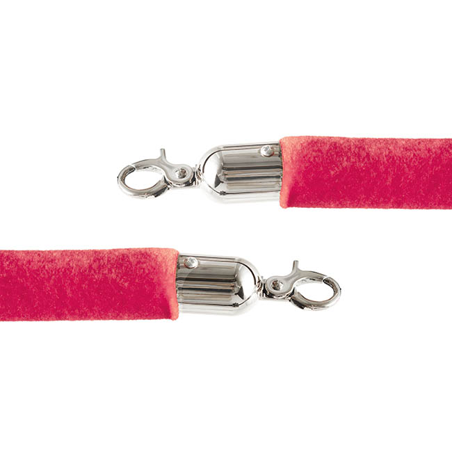 Red Flocked Bollard Post Rope with Silver hardware. Ideal for special red carpet events, queue line management and crowd control. Measuring 150cm in length and 3cm in diameter. This rope will suit our Silver hardware Bollard Pole Set SKU: 11010262SI.