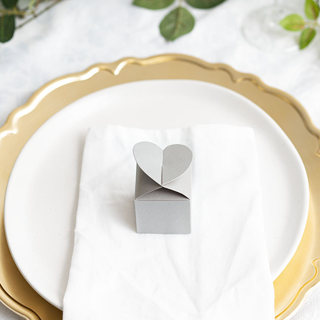 They are available in a pack of 20 and each comes flat-packed in one piece. You just fold together and tuck in. All fold lines are scored for easy assembly. 250gsm. Recyclable. This box will comfortably hold 10-12 sugared almonds.