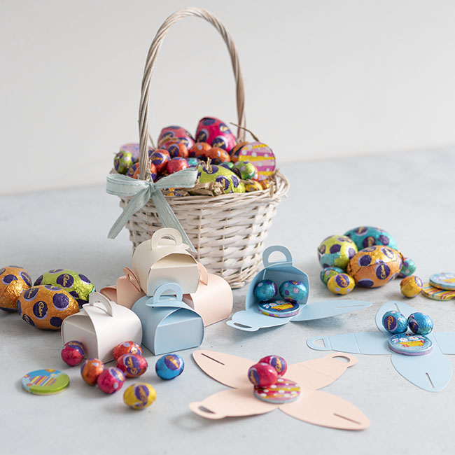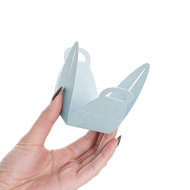 They are available in a pack of 20 and each comes flat-packed in one piece. You just fold together and tuck in. All fold lines are scored for easy assembly. 250gsm. Recyclable. This box will comfortably hold 6-8 sugared almonds.