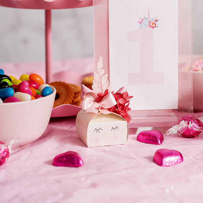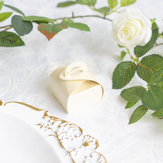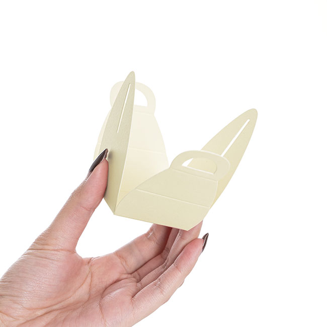 They are available in a pack of 20 and each comes flat-packed in one piece. You just fold together and tuck in. All fold lines are scored for easy assembly. 250gsm. Recyclable. This box will comfortably hold 6-8 sugared almonds.