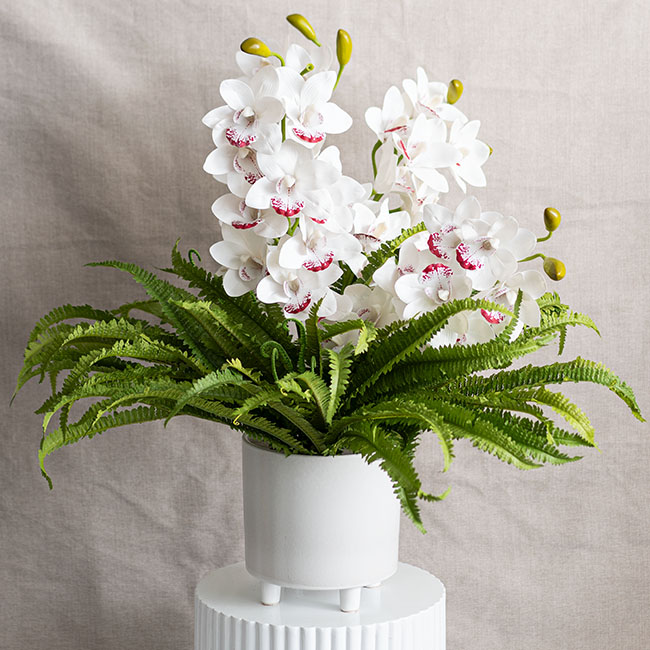 This fern measures 55cm high and when opened up can expand up to 75cm wide. This fern has approximately 28 leaves.