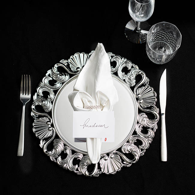 This plate is available in packs of four and masures 32.5cm in diameter.