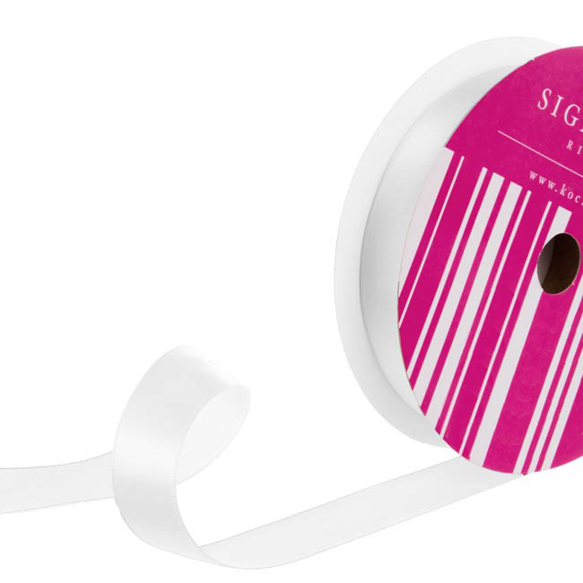 At 50m long and a perfect 25mm width, this single face satin ribbon in White has a glossy sheen on one side and matte finish on the back making it an elegant yet economical option for instore or personal use.