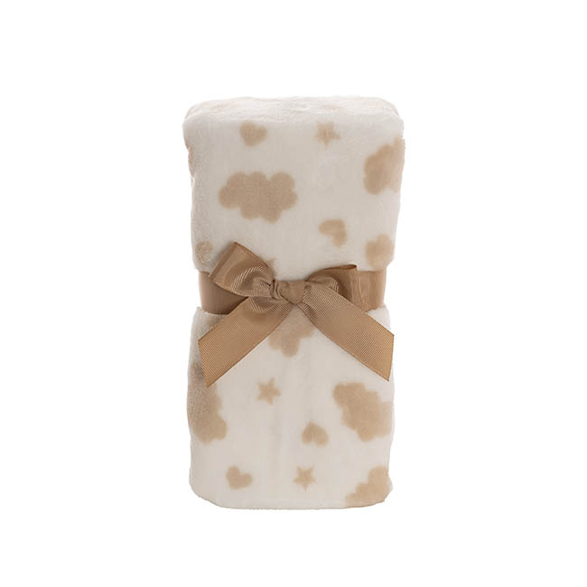 Welcome the little one with this adorable baby gift set, featuring a soft brown bunny named Flora and a matching rattle for sweet sensory play. Flora measures 30cm tall with a 22cm sitting height, making her the perfect cuddly companion. The set is completed with a cosy fleece blanket adorned with a charming cloud pattern, measuring 90cm by 75cm. Thoughtfully curated, this set makes a heartfelt gift for newborns and new parents alike.