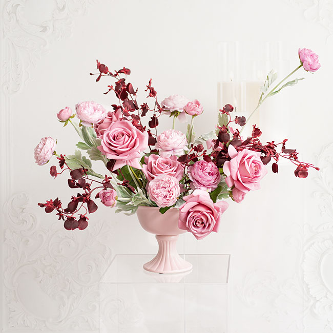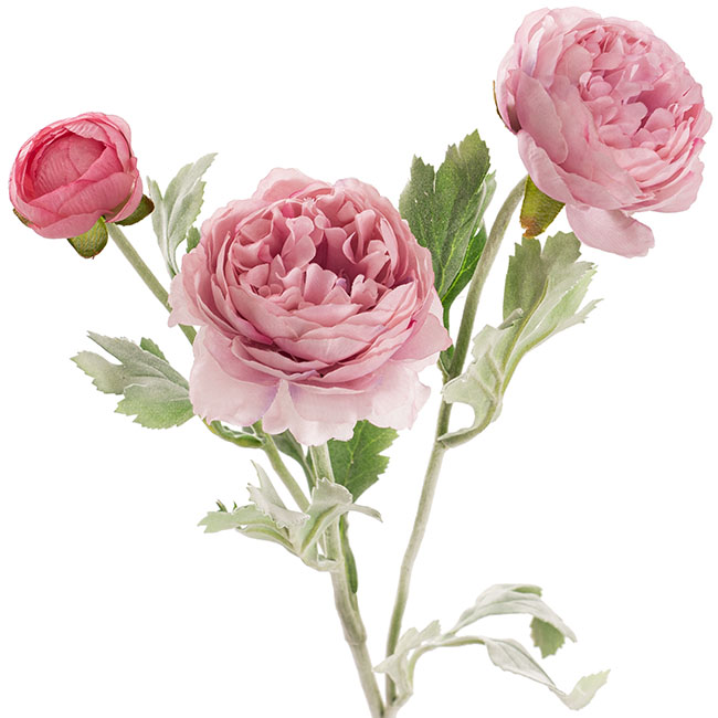Our Buttercup Ranunculus Spray in Blush Pink is 52cm in height and features three artificial flower heads, including 1 large (8cmD), 1 medium (7cmD), and 1 small bud (3.5cmD). A popular filler flower, this spray has a wire base, so the individual flowers can be posed into different shapes.