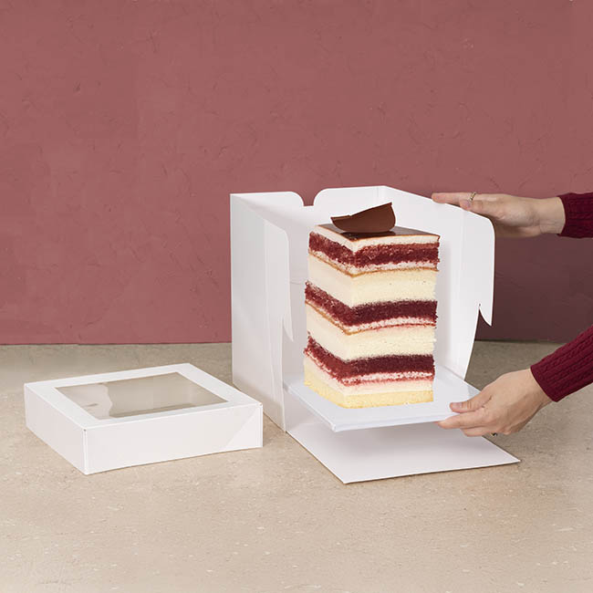 You can place the cake on the board to display or then use with a cake box for transporting.