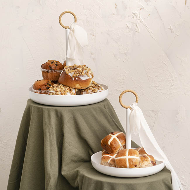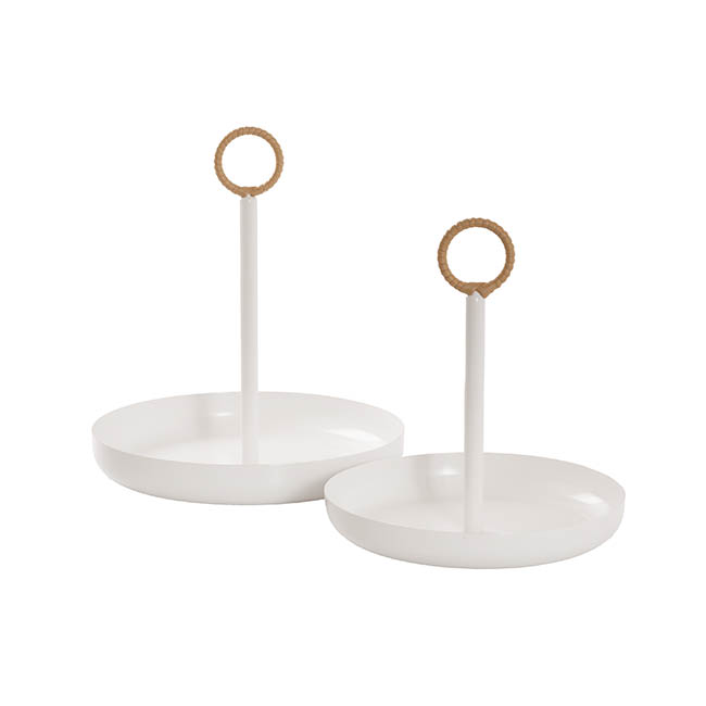 This product is sold as a set of two. The smaller tray measures 25cm in diameter and 26.5cm tall, while the larger tray is 29cm in diameter and 31.5cm tall.