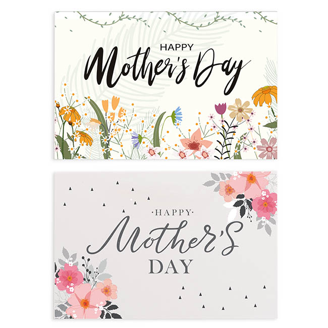One style includes a 'Happy Mother's Day' sentiment with a garden background on the front, leaving the back free for a personal message.