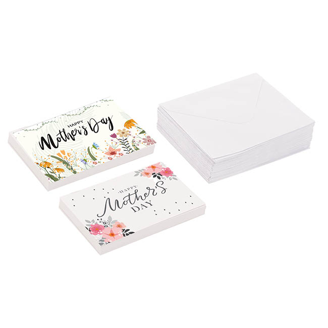 Cards Mothers Day Flowers & Envelope White Pk50(10x6.5cmH)