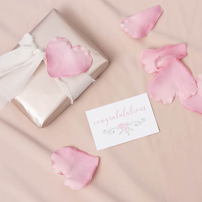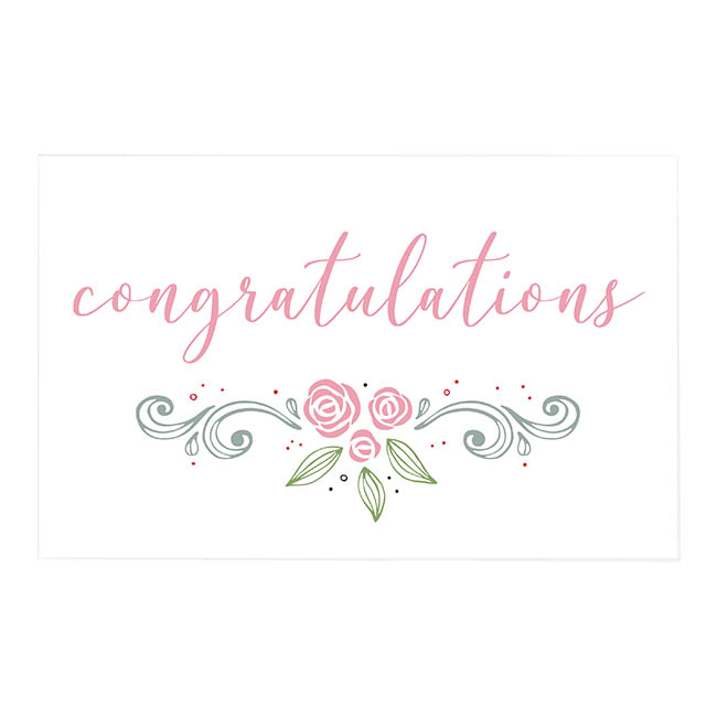 This Congratulations with rose flourish design on a white kraft card will be sure to wow your next floral bouquet, hamper or gift.