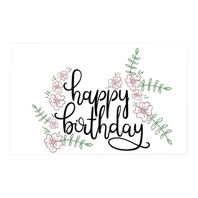Cards White Happy Birthday Drawn Flowers (10x6.5cmH) Pack 50