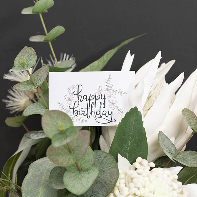 Designed to fit seamlessly into a card fork, these cards are perfect for wrapped bouquets, hamper box gifts, and potted plants—whether on display in-store, on their way to a recipient, or showcased in the home. They can also be used as a more compact alternative to a traditional greeting card, ideal for short and heartfelt messages.
