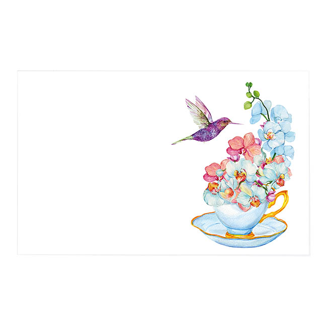 Cards White Hummingbird & TeaCup Flowers (10x6.5cmH) Pack 50