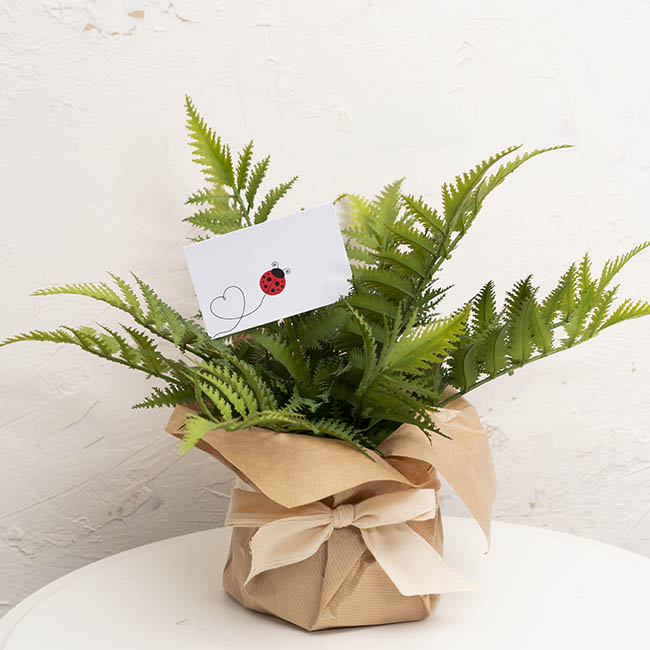 This pack of White Lady Bug Love Heart Trail florist Cards displays a romantic yet sweet design on white kraft. Designed with florists and hamper makers in mind, these Valentine's, engagement, and anniversary-appropriate cards slide perfectly into a card fork. Alternatively, use these cards as an alternative to a traditional, larger card for a brief and tender message.