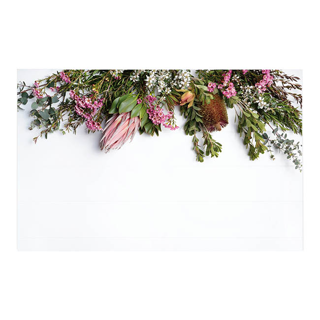 This pack of Native Flowers Top Border florist Cards displays a photographic floral depiction on White kraft. Designed to fit seamlessly into a card fork, these cards are perfect for wrapped bouquets, hamper box gifts, and potted plants—whether on display in-store, on their way to a recipient, or showcased in the home. They can also be used as a more compact alternative to a traditional greeting card, ideal for short and heartfelt messages.