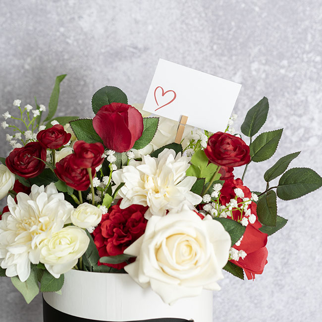 This florist card measures 10cm wide and 6.5cm in height. This card is pre-packaged in a pack of 50 cards. White envelopes are sold separately - order code E8120, EN or EN100.