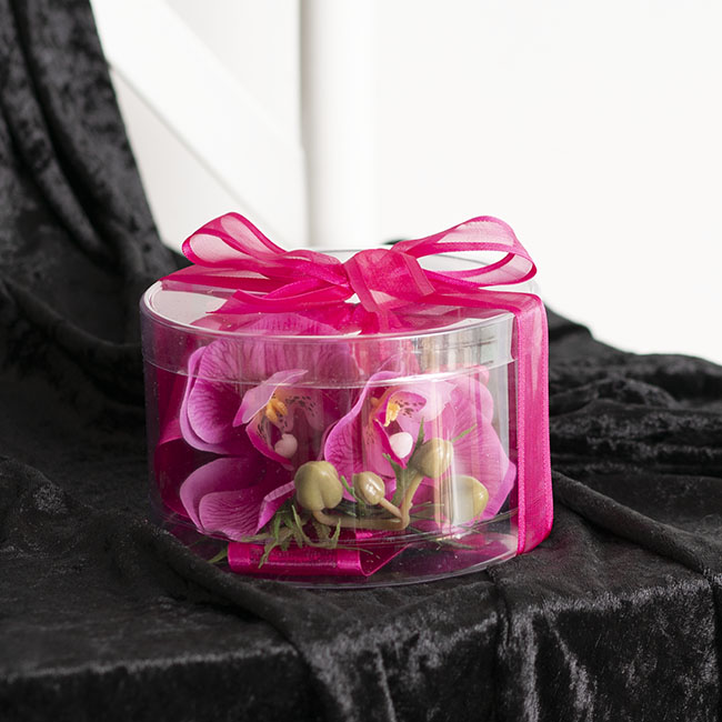 Perfect for corsage storage and display, these also make a creative alternative to a bomboniere box or gift box, when filled with chocolate truffles, candy or fortune cookies. Our round cello corsage box measures 5"Dia X 3"H. Customers tell us they also make great bridal shower favours!