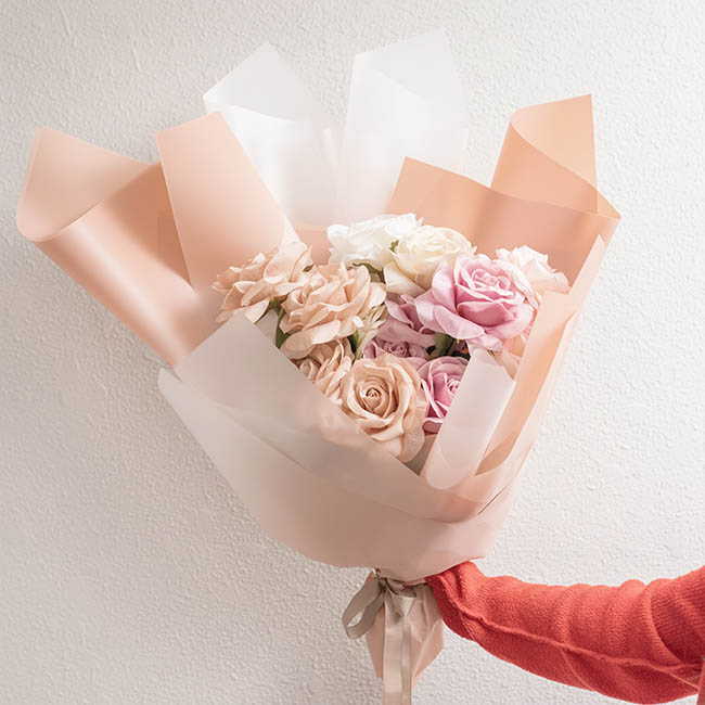 It offers the perfect balance of flexibility and durability. The sturdy material provides reliable support for stems while remaining easy to fold, shape, and style. Its semi-translucent frosted surface diffuses light beautifully, allowing blooms to stand out while maintaining an elegant, contemporary look.