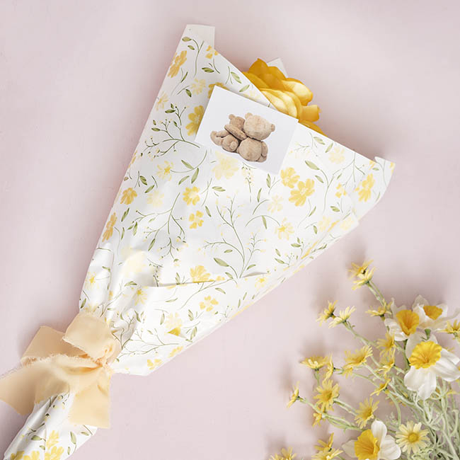 Suitable for wrapping floral bouquets, this print of wrap is particularly well-suited to Mother's Day, Summer, or Springtime themes.
