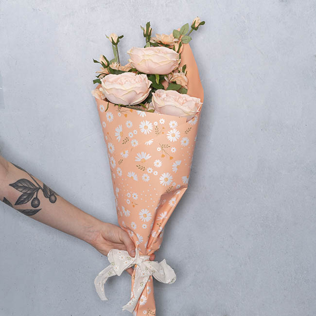 Suitable for wrapping floral bouquets, this print of wrap is particularly well-suited to an Easter, cottage-style, or Sprintime theme.