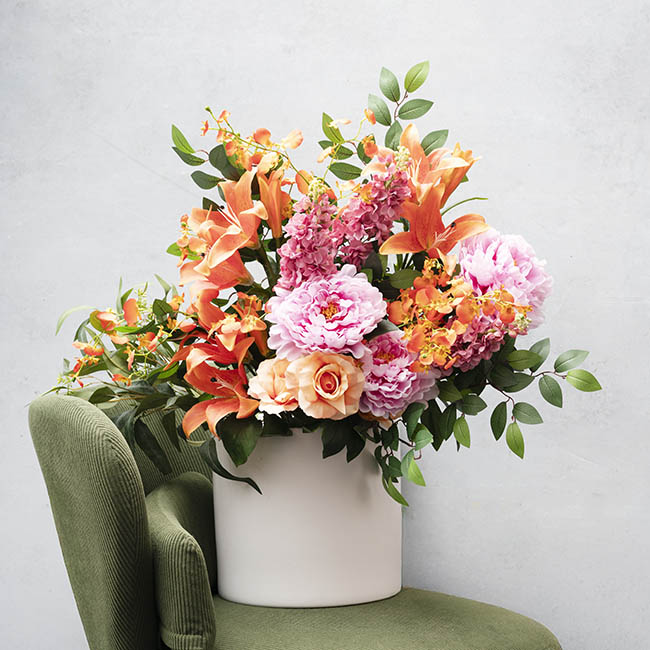 This pot can fit one floral foam brick. As a waterproof vessel, this pot is a versatile piece for potted plants, as well as cut flower arrangements.