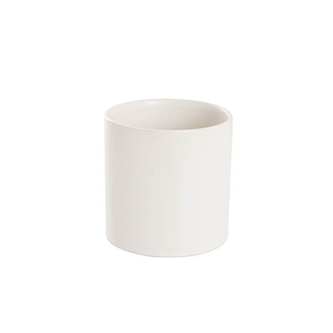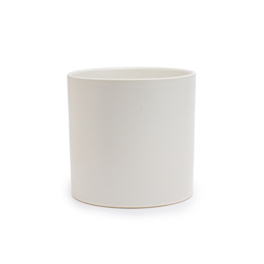 Ceramic Cylinder Pot Satin w/ Drainage Hole White 12x12cmH